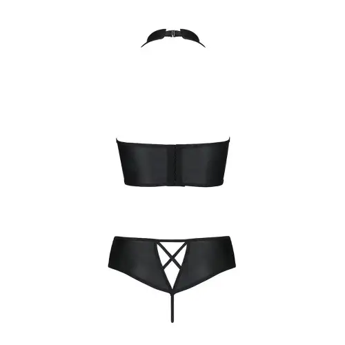 Этот потрясающий комплект нижнего белья, изготовленный из высококачественной экокожи, состоит из бюстгальтера и трусиков с замысловатой шнуровкой, которая придает вашему образу дополнительную чувственность. Черный цвет является классическим и неподвластным времени, поэтому его легко сочетать с любым нарядом или событием.