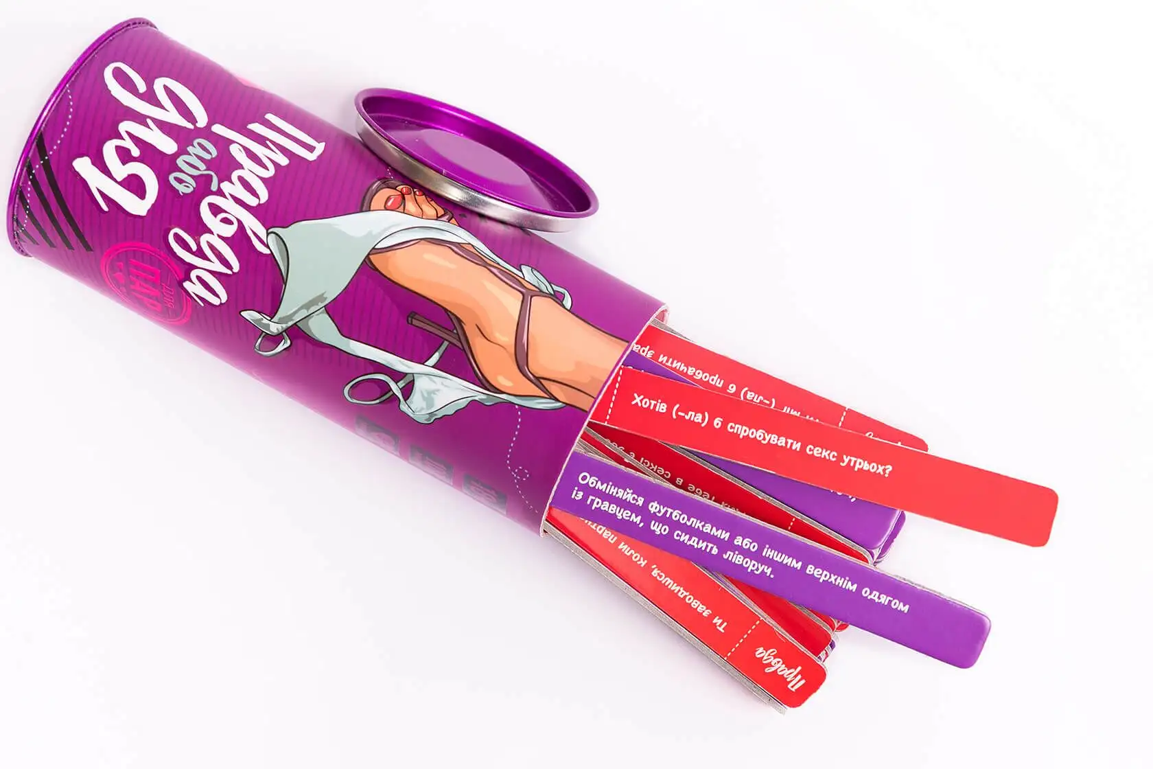 Эта игра с более чем 100 различными карточками с провокационными вопросами и смелыми заданиями наверняка будет развлекать вас часами. Если вы хотите попробовать что-то новое со своим партнером или просто хотите добавить немного волнения в свою сексуальную жизнь, Эротическая игра Правда або дія (Для пар) (UA) - идеальный выбор.