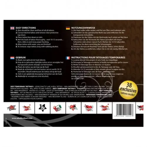 Так зачем ждать? Добавьте волнения в свою личную жизнь сегодня с набором Интимные временные тату Sex Goddes. 38 уникальных дизайнов у вас под рукой — возможности безграничны!
