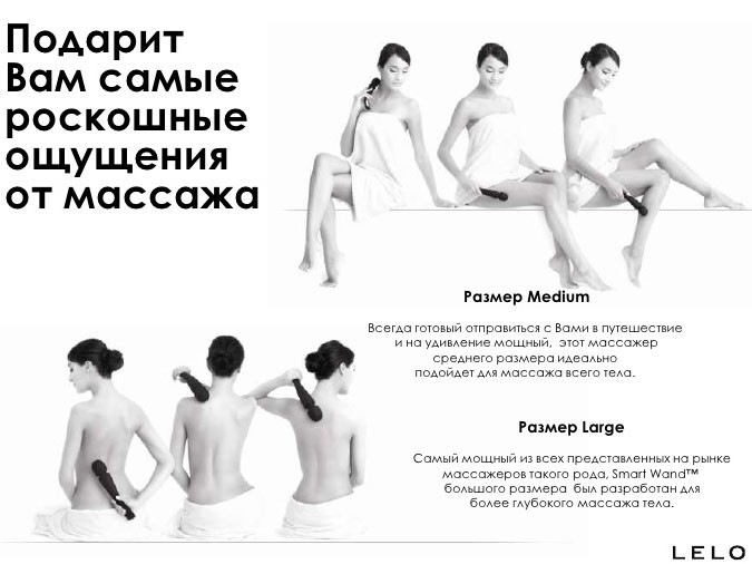 Массажер для тела SMART WANDS MEDIUM IVORY. Массажер премиум качества от шведского производителя LELO, идеально подойдет для массажа всех интимных зон, а также спины, шеи, рук и ног! 8 режимов вибрации. Общая длина - 22 см, диаметр - 4 см.