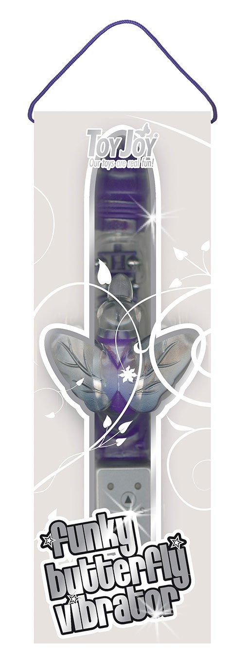 Вибратор компьютерный TOY JOY FUNKY BUTTERFLY DARK PURPLE. Имеет 3 ряда вращающихся шариков. 8 режимов вращения и вибрации головки вибратора + 9 режимов клиторальной стимуляции стимуляции. Общая длина - 22,5 см, рабочая длина - 12 см, диаметр - 3,5 см, длина клиторального отростка - 7 см.
