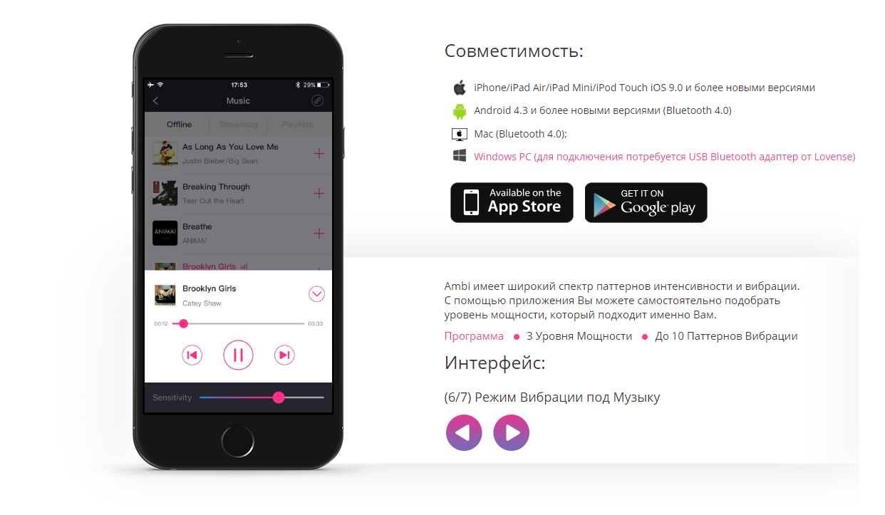 Так как вибратор Lovense – Ambi является технологической новинкой, основные его достоинства связаны с этой сферой: