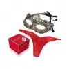 Милые красные трусики выполнены из эластичного и мягкого материала, который отлично тянется и не вызывает аллергию, дискомфорт. Носить трусики можно каждый день или надевать для особенных случаев. Наручники выполнены из надежного и прочного металла, размер – универсальный, поэтому подойдут всем. Но главное – это украшение из сотни стразов, которые невероятно блестят и смотрятся очень стильно. Упакованы трусики и наручники в подарочную коробку, что делает из набора отличный презент для любовницы, возлюбленной или близкой подруги.